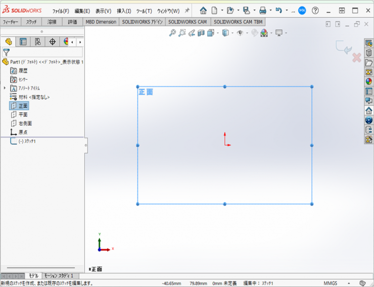 スケッチ開始時にスケッチ平面を垂直に表示させる
