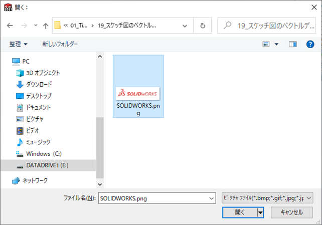 ファイルを開くダイアログボックスが表示されますので、挿入する図(bmpファイルなど)を選択します。