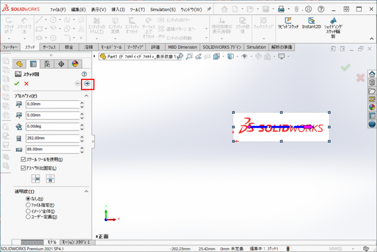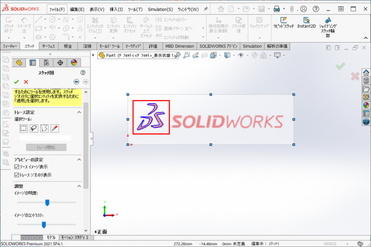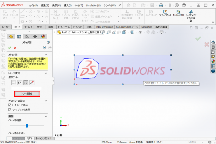 5.トレース設定の選択ツールを使用して、スケッチとして使用したい個所を囲みます。
