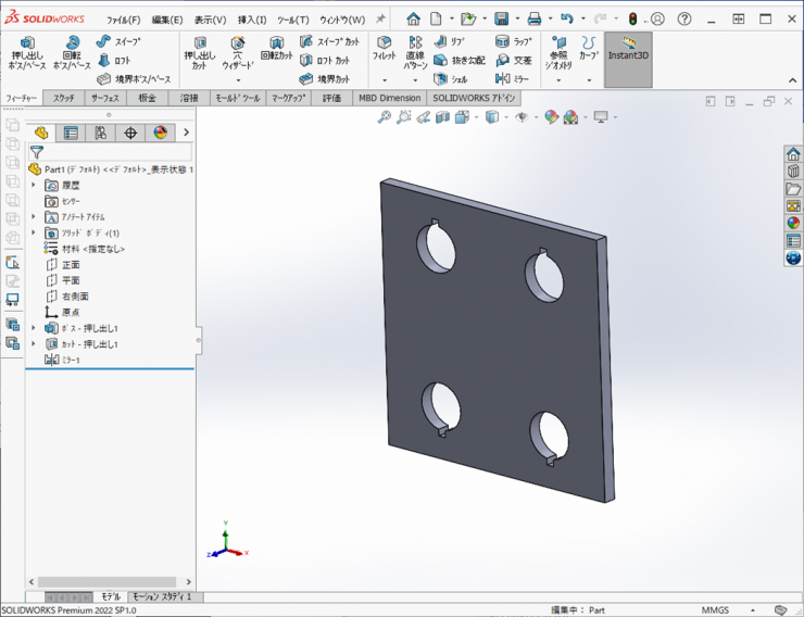 今回はSOLIDWORKS 2022で機能強化された2平面を基準にミラーの機能をご紹介します。