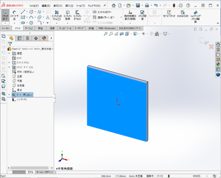 2.フィーチャータブの【押し出し ボス/ベース】をクリックします。