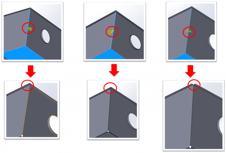 展開ラインのパラメータで、コーナーのエッジ(内側でも外側でも可)を指示します。