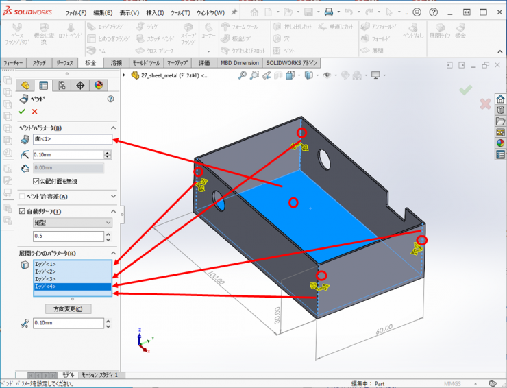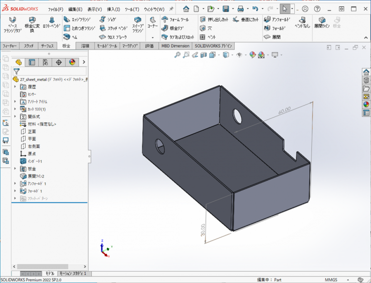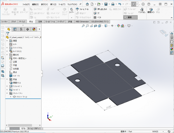 2.【板金】コマンドを使用して、板金のデータに変換します。
