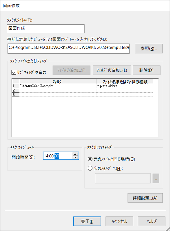 ・【タスク出力フォルダ】…デフォルトでは、元のファイルと同じ場所ですが、フォルダを指定することもできます。