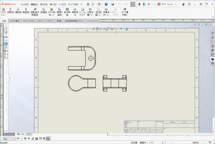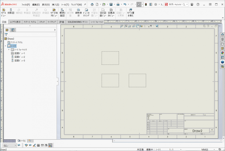 図面化するには、ビューをあらかじめ配置した図面テンプレートが必要になります。