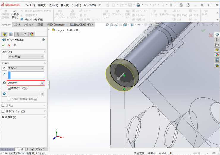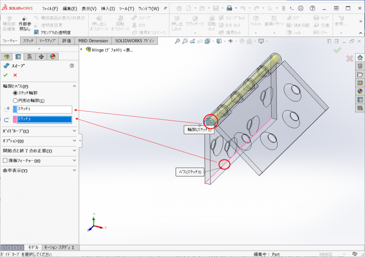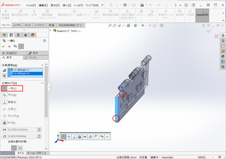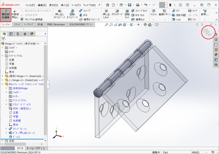 ③アセンブリを開始になり、Hingeファイルが選択されて挿入状態になります。
