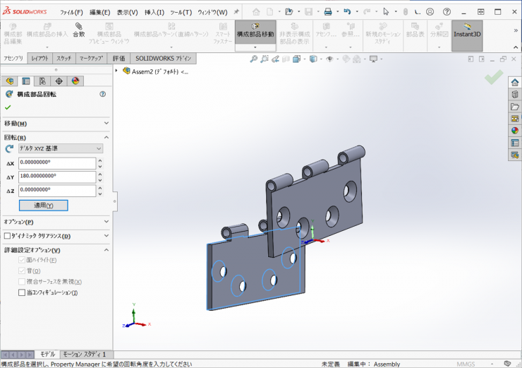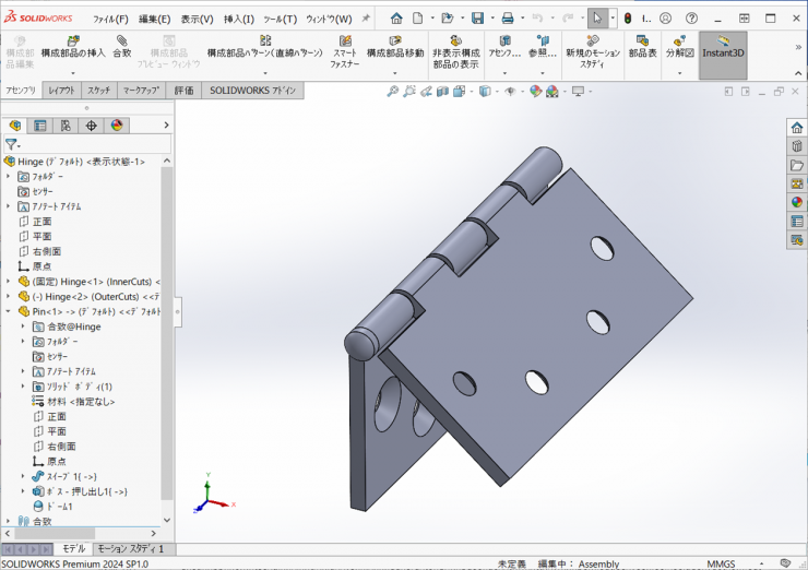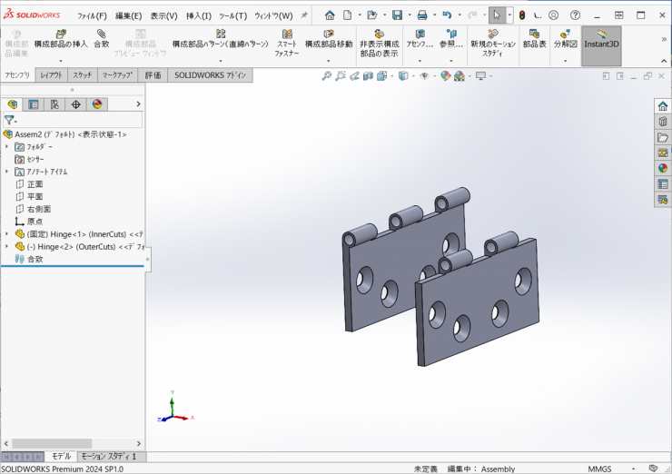 今回は、前回作成したヒンジの部品から、ヒンジのアセンブリを作成します。