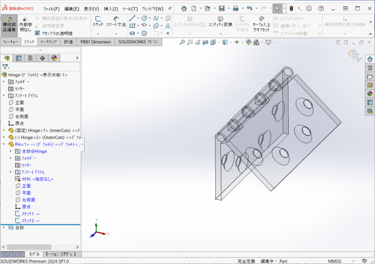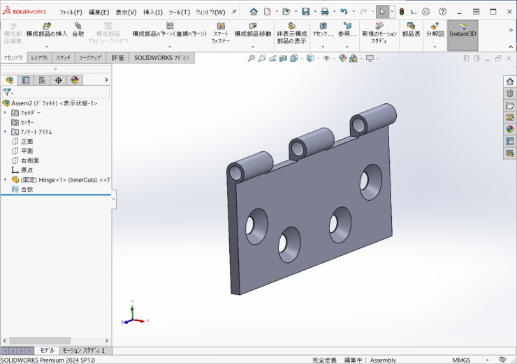 ⑨アセンブリファイルを「Hinge.sldasm」の名前で保存します。