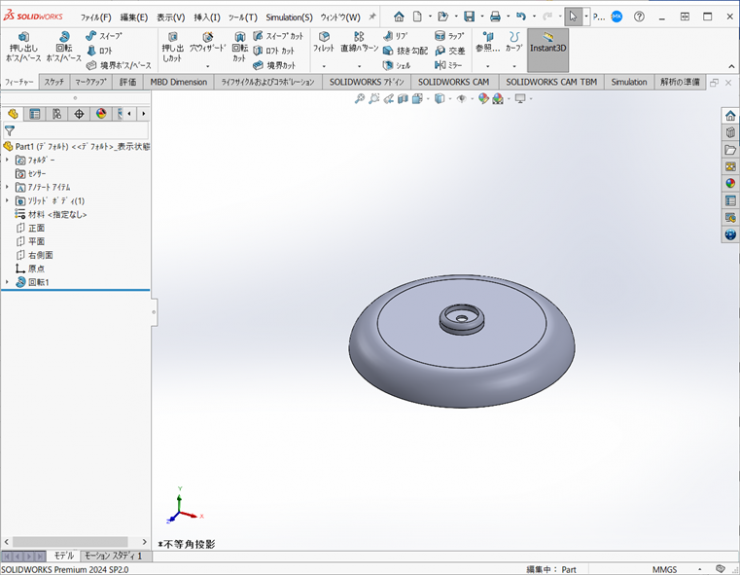 1.新規部品を開き、台を回転フィーチャーで作成します。