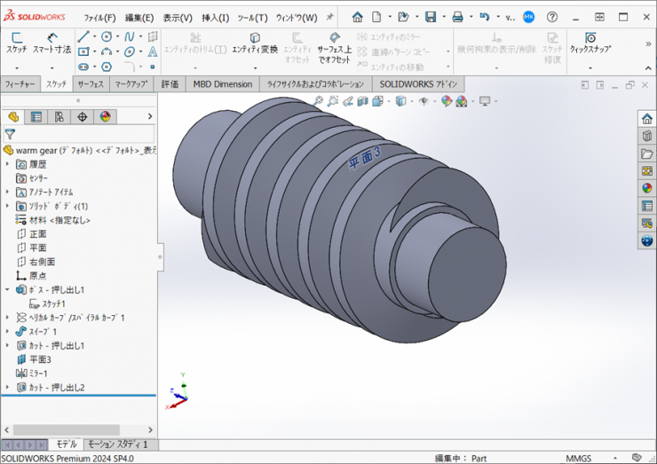 今回は、下図のようなウォームギアをモデリングする手順をご紹介します。