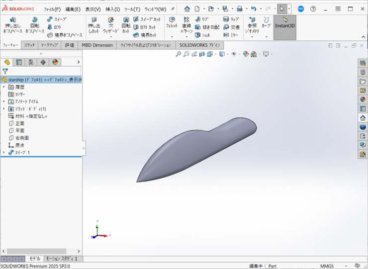 19.スイープを使用し、ウィング部分を作成します。