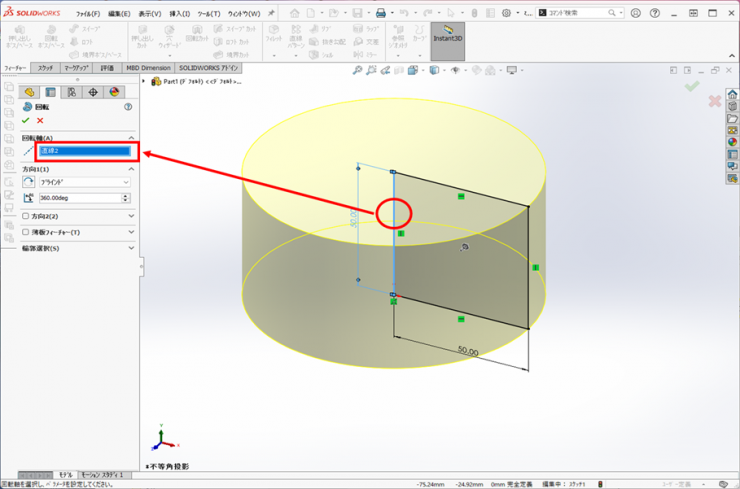 5.フィーチャータブの【回転 ボス/ベース】アイコンをクリックします。
