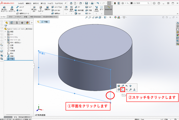 8.作成された平面をクリックして、新規のスケッチを開始します。