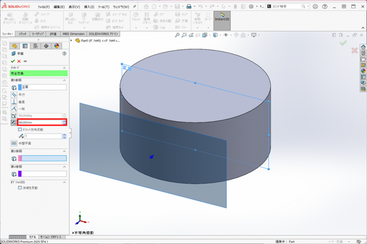 7.オフセット距離に【60mm】を入力し、【OK】をクリックします。