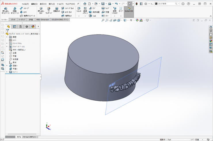 ③ラップフィーチャーで、文字が押し出されました。これでモデリングは終了です。