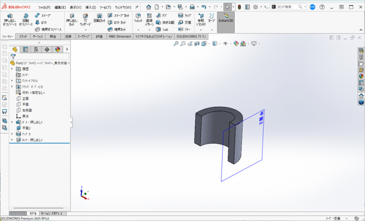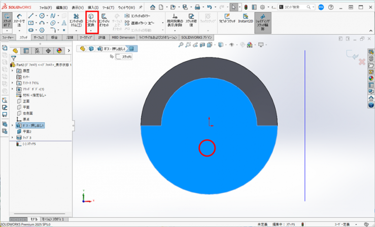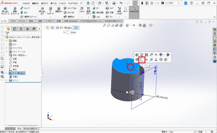 5.フィーチャータブの【押し出し ボス/ベース】アイコンをクリックします。
