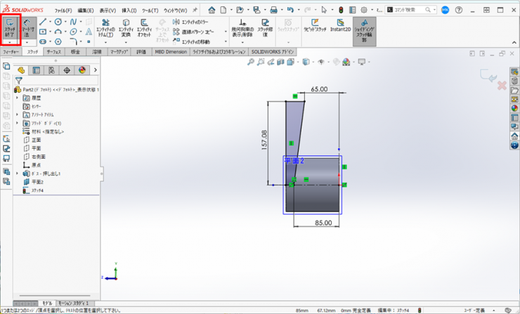 8.作成された平面をクリックして、新規のスケッチを開始します。